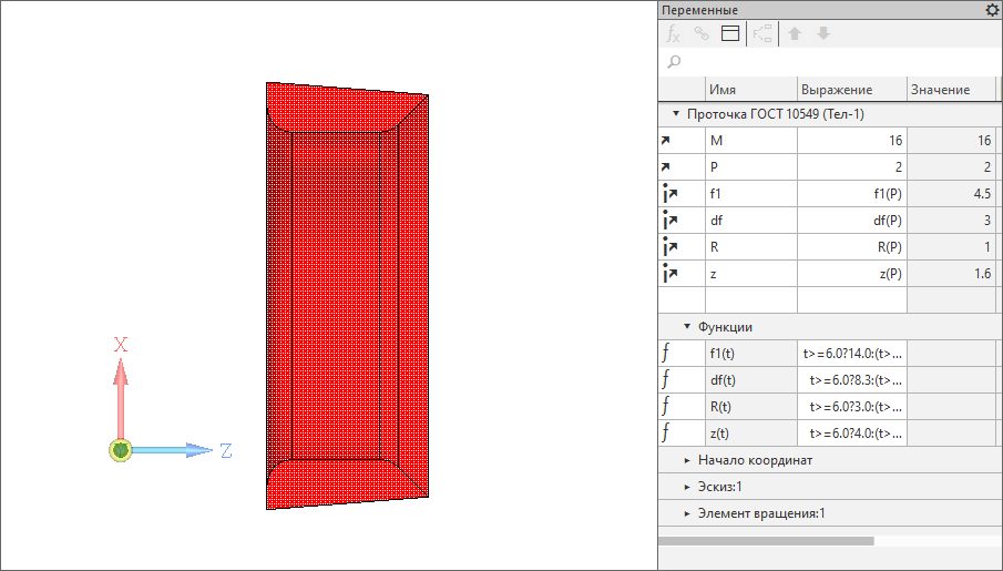 Проточка для наружной резьбы по ГОСТ 10549. Показан разрез. Параметризация завязана на диаметр и шаг резьбы.
