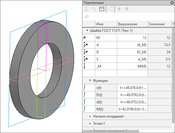 Шайба по ГОСТ 11371. Параметризация завязана на диаметр резьбы крепежной детали.